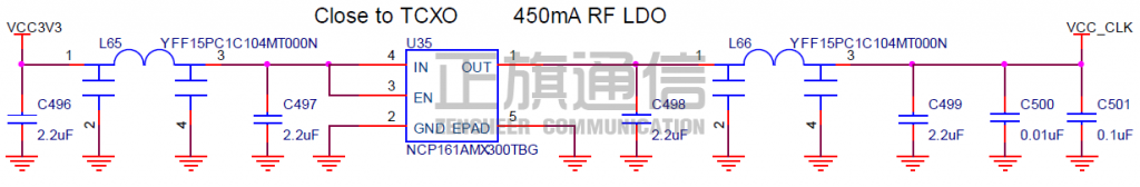 LDO适用于射频电路及音频电路,只在电压差较小的场合,如0.5-2V。除了工作电压与电流外,需要注意LDO的纹波抑制一般在低频段表现很好,在高频段则不行,所以建议采用穿心电容(三端子滤波器)配合LDO使用,可参照SDR-B1,如下图。