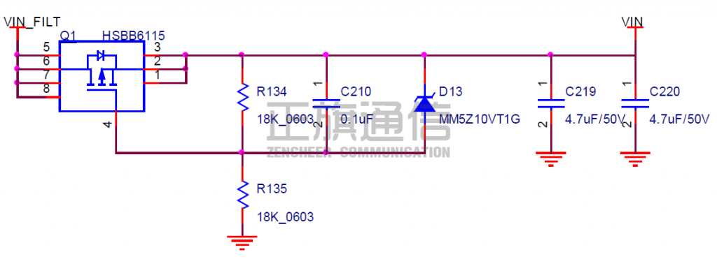 Q1的基本参数是Vds=-60V,Id=-26A,尺寸仅为3*3mm,D13用于将Vgs限制在-10V,保证不超过Q1的Vgs承受范围(-20V), C210起到缓冲作用,R134,R135是限流电阻,C219,C220是滤波器电容。